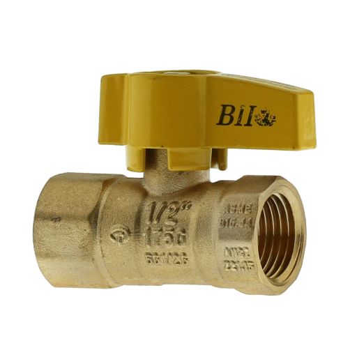 Gas Ball Valves have a two piece forged brass body and a blow out proof stem. Available in combinations of FPT, Flare and MPT threads. Options for a 1/8" tapping for a manometer which allows line pressure to be tested at the valve are available. FPT connections are available with a yellow or red handle.