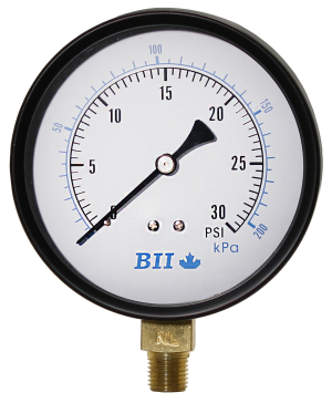 4" Pressure Gauge 0-30 Psi with Brass 1/4" MPT