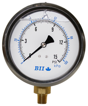 4" Liquid Filled Pressure Gauge 0 - 15 psi with Brass 1/4" MPT