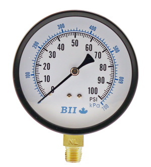 4" Pressure Gauge 0-100 Psi with Brass 1/4" MPT