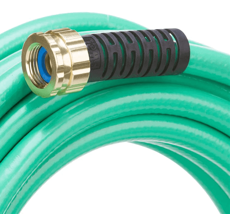 - Heavy-duty garden hose with a soft, flexible outer jacket.