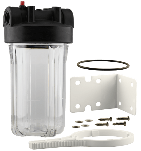 These filter housings are great for agriculture, water well, point of use, greenhouse/ drip irrigation, whole house residential and recreational vehicle applications. They have a threaded inlet and outlet with a relief button on the inlet side. These housings fit industry standard filter cartridges (not included). The filter heads have mounting bosses molded in for installation with a mounting bracket. Each unit comes with the housing, o-rings, filter bowl wrench, and a mounting bracket with hardware.