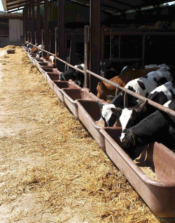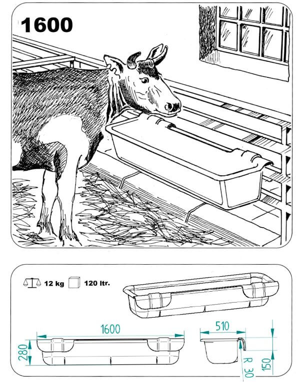 Holding the same amount of feed, a smaller trough would increase feed waste. Trough no. OKP1600 thus reduces feed waste.