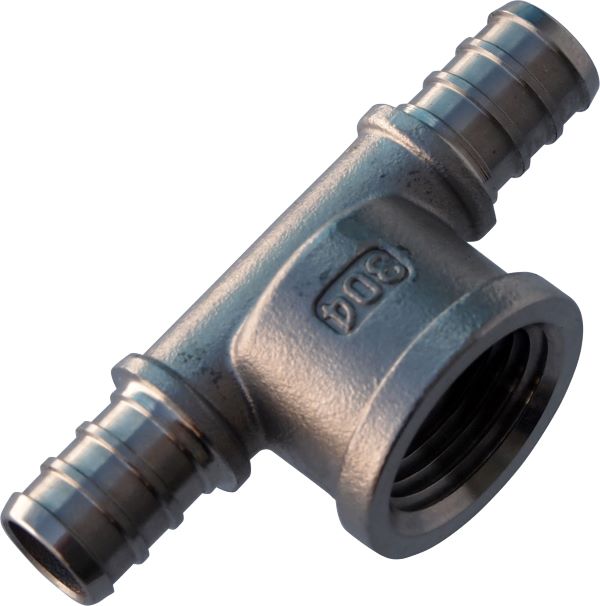 Pex Female NPT Drop Tee 3/4" pex x 1/2" FPT, 304SS