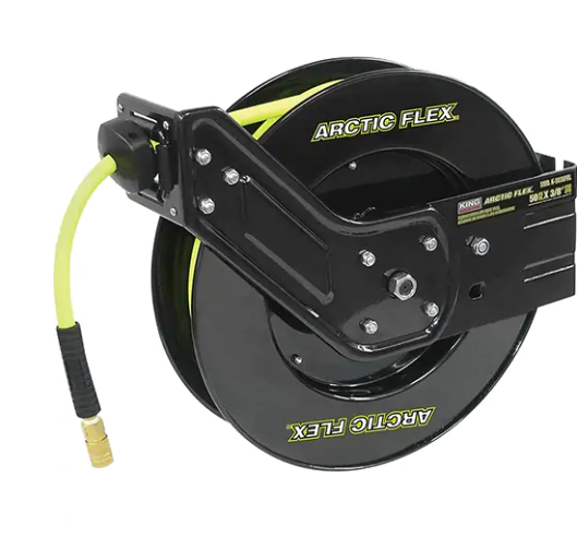 Versatile retractable hose reel is perfect for workshops
