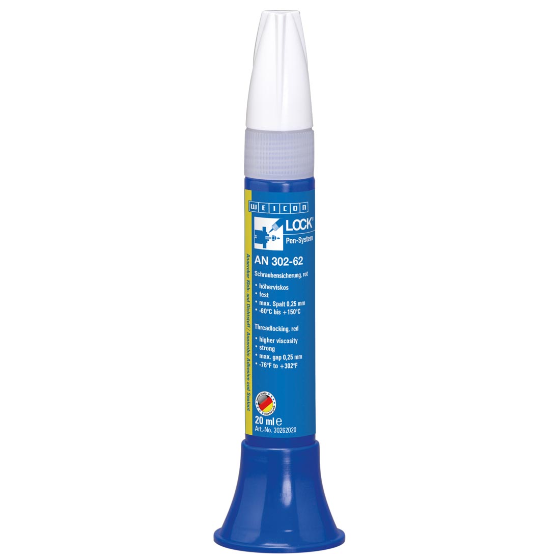 High strength, hard to disassemble. Red. Convenient pen-system for easy application.